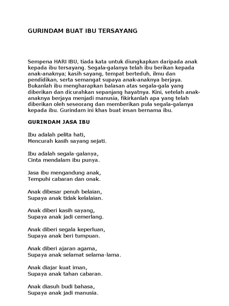 Gurindam Buat Ibu Tersayang Pdf